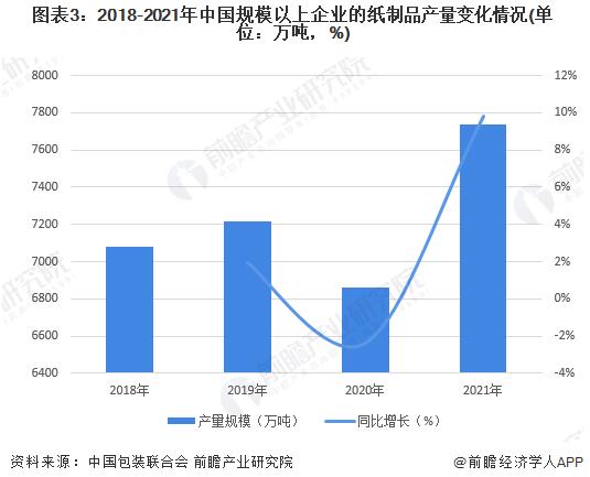 2020年受新冠疫情的影响,天下规模以上企业纸制品产量同比下降2.4%;2021年,天下规模以上企业纸制品产量抵达7739万吨左右,同比增添9.8%,凌驾2019年整年水平。。。。。。。。