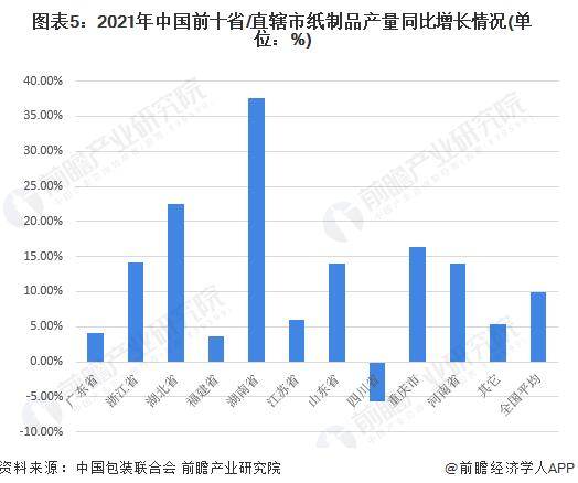 从在2021年,海内前10省/直辖市纸制品产量增速来看,除了四川省,其他9省均为正增添,其中湖南省的增幅******,凌驾30%。。。。。。。。